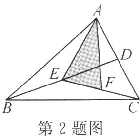 2. (2024·阜阳期末)如图,在△ABC 中,已知 D,E,F 分别是边 AC,BD,CE 的中点,且阴影部分的面积为 7,则△ABC 的面积为(