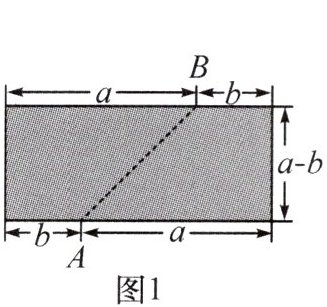 1. 湖南师大附中校本经典题 如图 1,把一张长方形纸片沿着线段 $ AB $ 剪开,把剪成的两张纸片拼成如图 2 所示的图形。