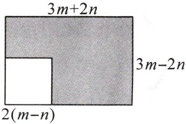 12. 如图,在长为$3m + 2n$,宽为$3m - 2n$的长方形铁片上,挖去边长为$2(m - n)$的小正方形铁片,则剩余部分的面积为$$