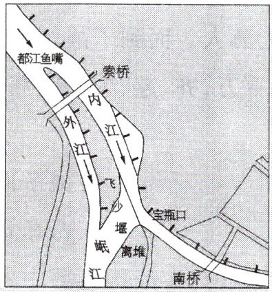 8. 下图所示的水利工程,2200 多年来一直发挥着巨大的作用,这在世界水利史上绝无仅有,充分反映出我国人民的智慧。图中“分水堤”(鱼嘴)东面的江水主要用于(