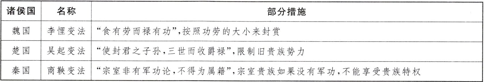 6. (2024·安徽中考)下表为战国时期一些诸侯国实行的变法。表中措施(