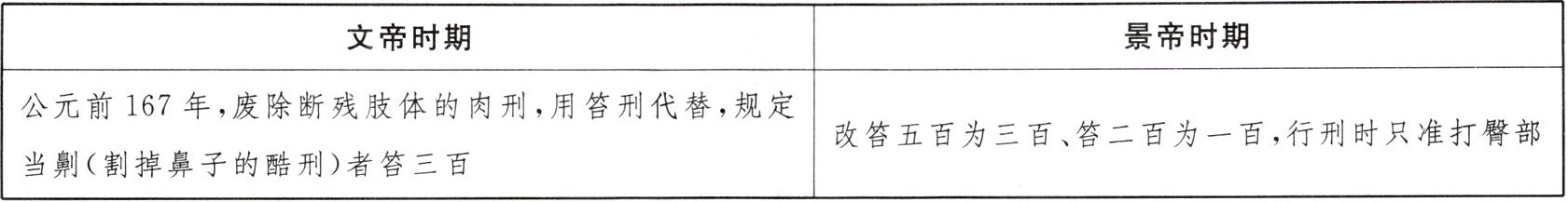 7. 下表是关于“笞刑(打板子)”的记录,该表可以说明汉文帝和汉景帝(