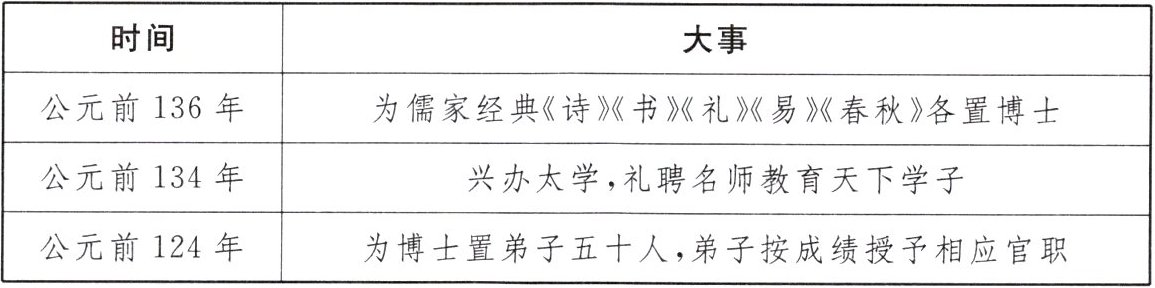 7. (2024·合肥市经开区期末)以下是某同学整理的有关汉武帝的大事年表(部分),据此可知汉武帝(