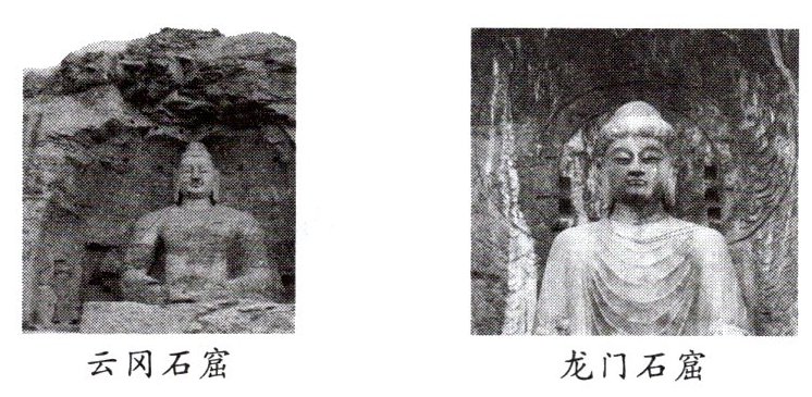 材料二:如果从艺术风格来说,云冈石窟的造型反映了北魏前期的生活,其雕像的线条粗犷洗练……后来北魏从大同南迁至洛阳,北魏政权为了更好地巩固统治和减少民族冲突,全面汉化……这时候龙门石窟的雕像造型开始圆滑细致,呈现汉族文化特有的审美观。