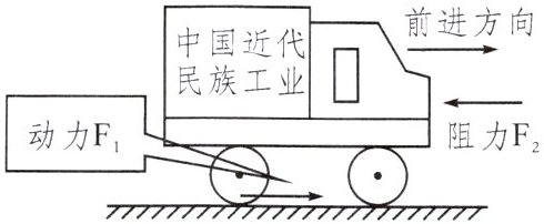 10. (跨学科 物理)如果用力学结构图来展示中国近代民族工业的发展历程,如下图所示,$ F_1 $是中国近代民族工业发展的动力,$ F_2 $是其发展的阻力。$ F_2 $的阻力主要来自封建主义、帝国主义等的剥削和压迫,$ F_1 $的动力可能来自(