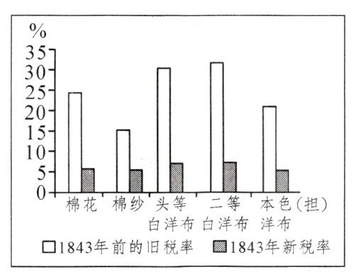 7. 下面是1843年前后中国进口货物税率变化表,从表中可以看出中国的(