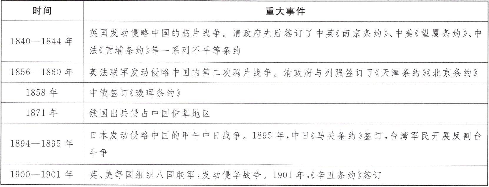 材料二:自1840年英国发动鸦片战争以来,外国列强通过接连不断地发动侵略战争,强迫中国政府签订一系列不平等条约,严重破坏中国领土主权的完整性,使中国一步步地沦为半殖民地半封建社会。