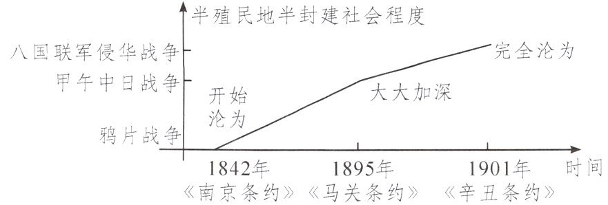 (2) 甲午中日战争后,签订了《马关条约》,中国的半殖民地化程度大大加深。