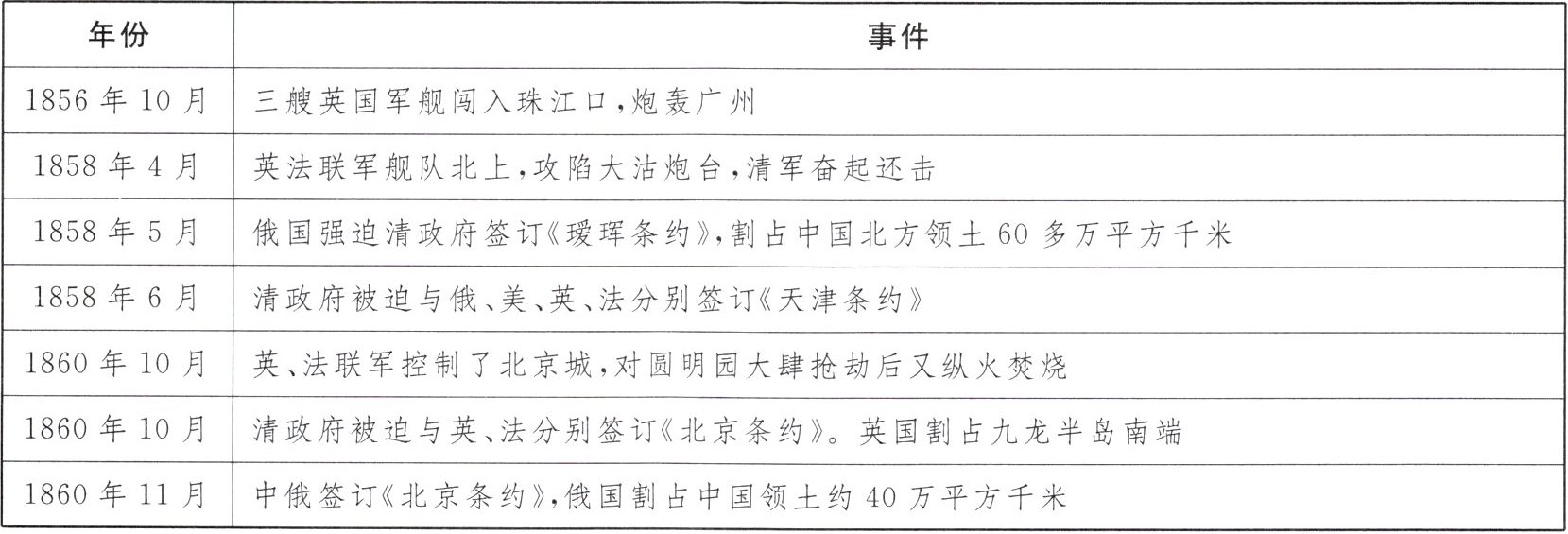 (1)战争:第二次鸦片战争。(2分)国家:俄国、英国。(2分)