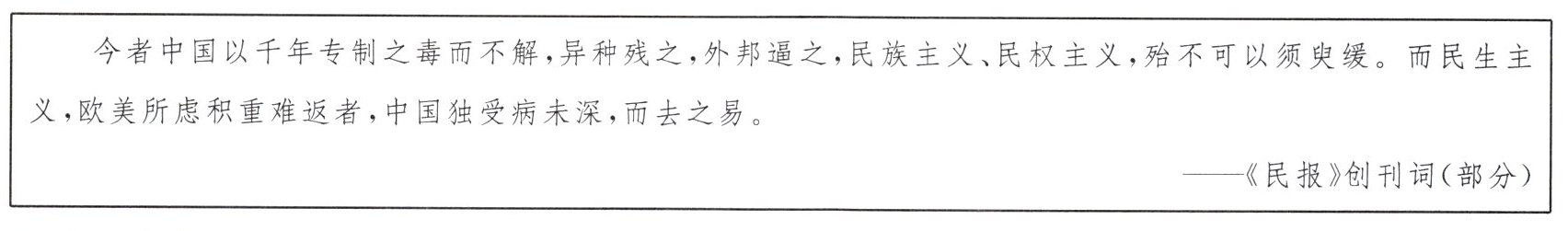 7. 报纸和杂志都具有反映和引导社会舆论的功能。1905年11月26日,《民报》在日本东京创刊,其创刊词中主要宣扬的是(