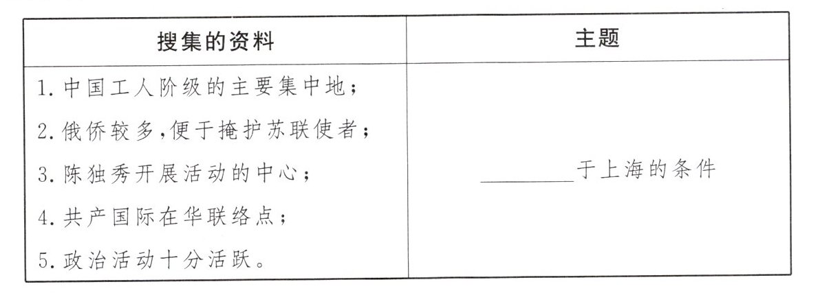 7. (2024·广东中考)某历史兴趣小组开展探究性学习活动,搜集了一些有关上海的资料。下表中“