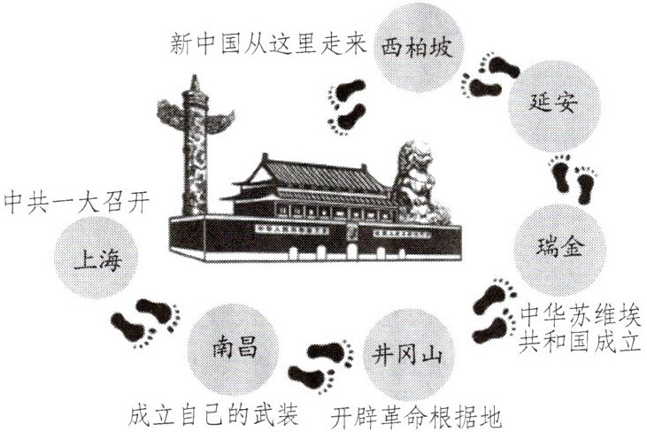 (2)从材料二中任选一个你最向往的红色圣地(“足迹”经过的重要地点),并结合所学知识,史论结合说明理由。(6分)