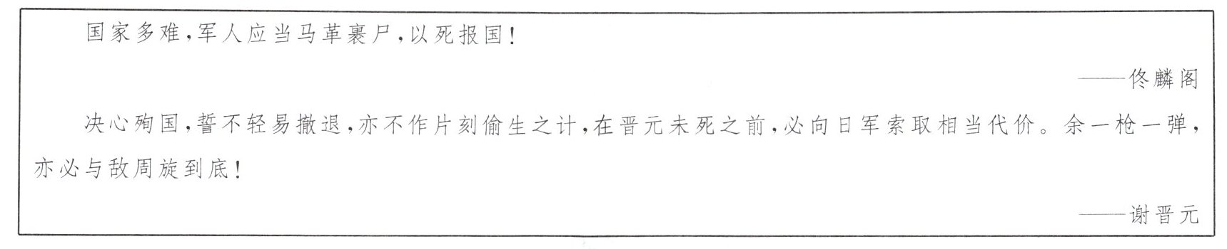 6. 某校历史小组同学准备制作一期学习抗战精神的板报,其中一个板块的主题是“抗日誓词”,他们抄录的以下誓词表现出(
