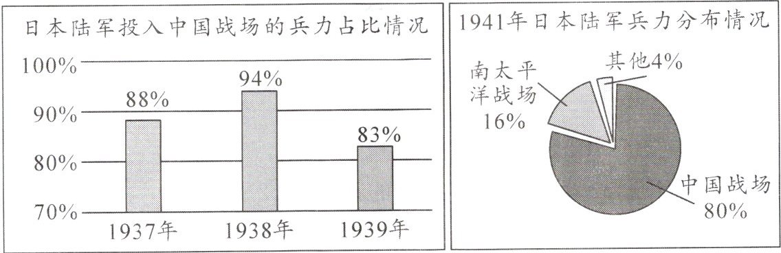 13. 下图是日本陆军在第二次世界大战期间的兵力投入统计。它们从一个侧面说明了(