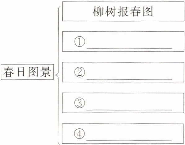 11. (☆课后习题一变式)在作者笔下,春天就像一幅幅美丽的图画。阅读文章,说说作者描绘了哪些春天的图景,完成思维导图。(4分)