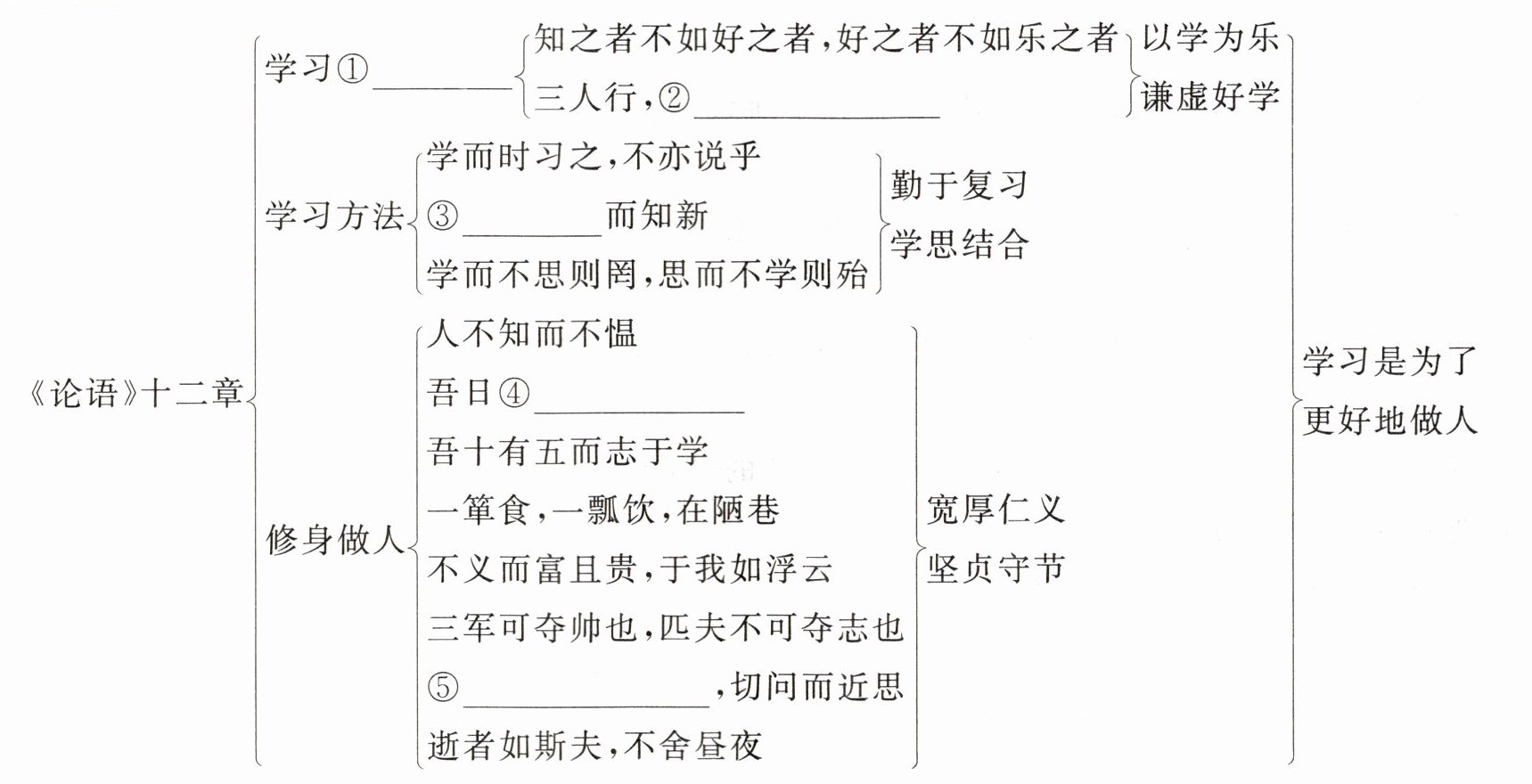 ①态度 ②必有我师焉 ③温故 ④三省吾身 ⑤博学而笃志