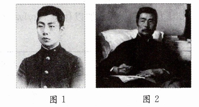 4. 下面是小雅同学为“鲁迅小传”选的插图,请仿照示例,为图2配上合适的文字,注意语意的准确和表达的生动。(句式、字数不要求和示例相同,至少使用一种修辞手法)