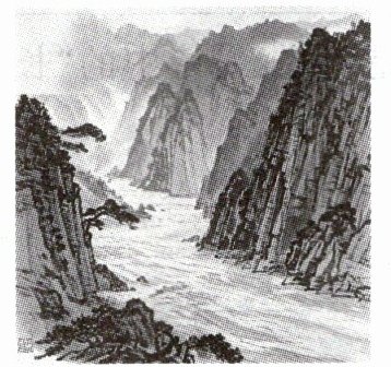 她在某 AI 平台发出如下指令:请为郦道元《三峡》中的"自三峡七百里中,两岸连山,略无阙处……自非亭午夜分,不见曦月。至于夏水襄陵,沿溯阻绝"配图。