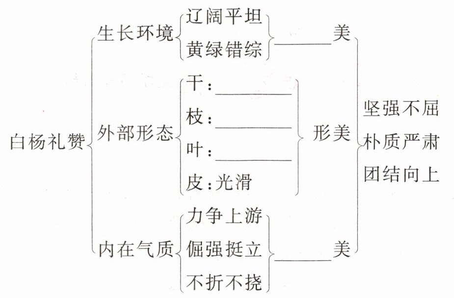 (7)它所有的 yāzhī( )一律向上,而且紧紧靠拢,也像加过人工似的,成为一束,绝不 pángyì-xiéchū( )。
