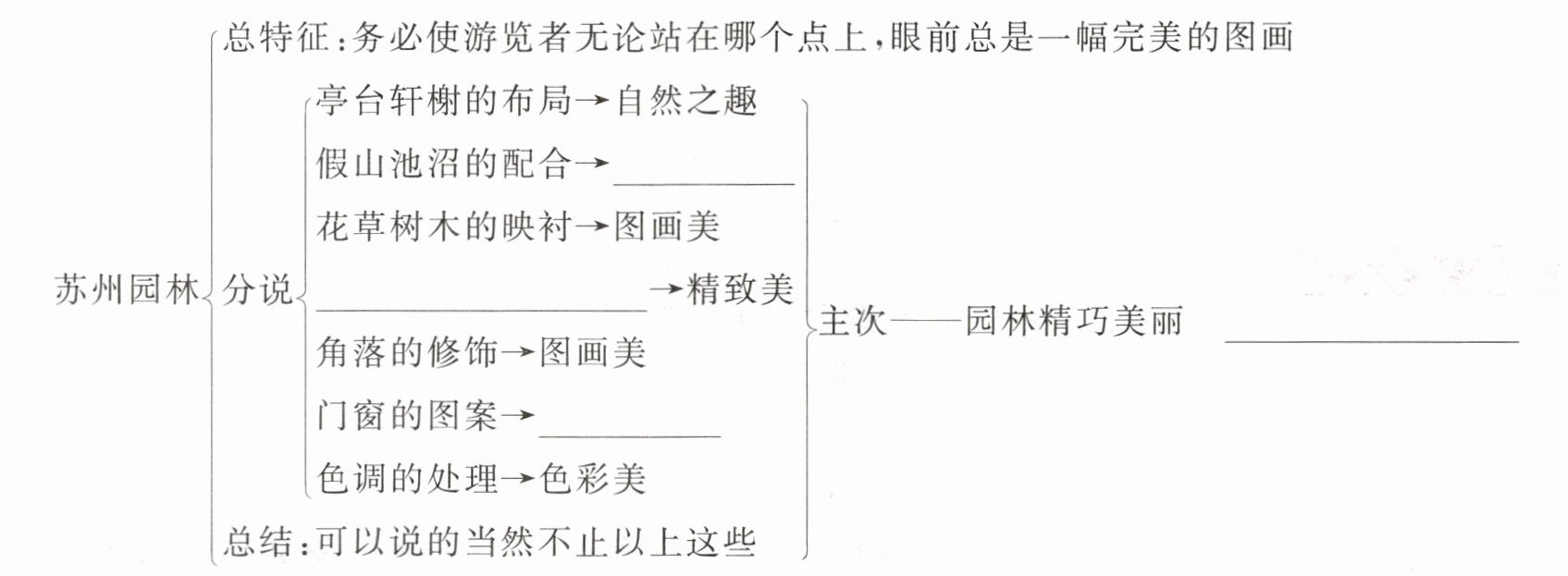 ),讲究近景远景的层次。(2)一切都要为构成完美的图画而存在,决不容许有欠美伤美的 bàibǐ(