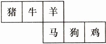 9. (2024·广州荔湾区期末)中国讲究“五谷丰登,六畜兴旺”。如图,这是一个正方体的展开图,图中的六个正方形内分别标有六畜:“猪”“牛”“羊”“马”“鸡”“狗”,将其围成一个正方体后,则与“牛”字一面的相对面上的字是(