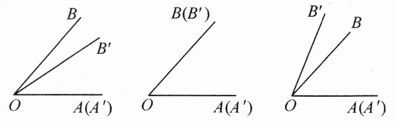 问题 1:类比线段长短的比较,除了用量角器量出角的度数,还可以将两个角的一边叠合在一起,两个角的另一边在重合边的同一侧,观察这两边的位置,比较这两个角的大小: