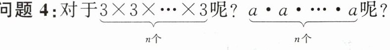 问题4:对于$\underbrace{3×3×…×3}_{n个}$呢?$\underbrace{a·a·…·a}_{n个}$呢?