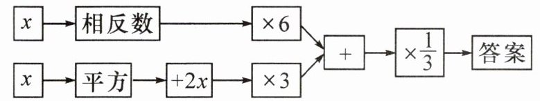 (3)当输入数据x时,将进行以下计算:$\frac{1}{3}$[6(-x)+3(x²+2x)]=$\frac{1}{3}$(-6x+3x²+6x)=x².