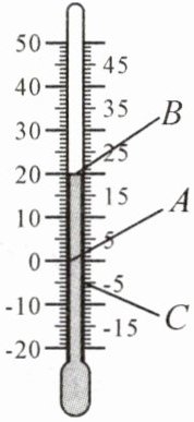 (1) 点A表示5摄氏度;点B表示25摄氏度;点C表示-5摄氏度。