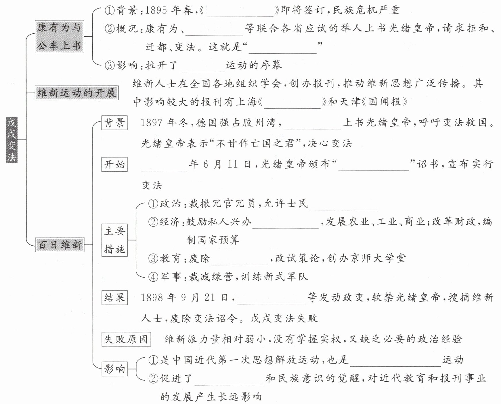 马关条约 梁启超 公车上书 维新 时务报 康有为 1898 明定国是 上书言事 工矿企业 八股文 慈禧太后 资产阶级改良 思想启蒙