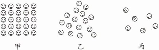 观察丙图,分子极度散乱,间距很大,以高速向四面八方运动,符合气态物质分子的运动特点,所以丙是气态物质,D选项错误。