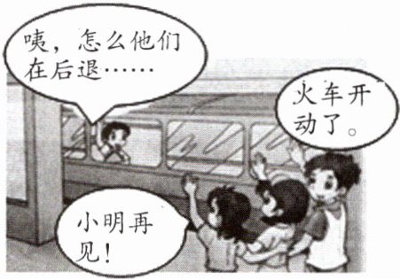 5.(2022·南阳)假期到了,班上的几个同学送小明乘列车回家。如图所示,几个同学看着列车徐徐开动,小明坐在窗边,却看到同学们渐渐向后退去。几个同学和小明所选择的参照物分别是( )