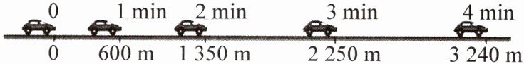 根据题目给出的数据,小汽车在相同的时间间隔(1分钟)内,行驶的距离并不相同,因此小汽车做的是变速直线运动。