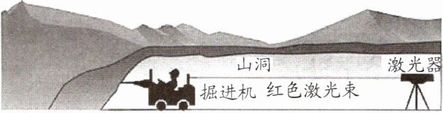本题考查光的直线传播的应用。光在同种均匀介质中沿直线传播,激光器发出一束激光,由于光的直线传播,就可以射入隧道,掘进机就可以沿着直线前进,保证方向不会出现偏差。生活中,由于光的直线传播形成的现象很多,如小孔成像、影子的形成、日食月食、激光准直等。