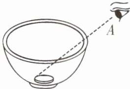 12. (双选)如图,小明将一枚硬币放在碗底,眼睛在A处恰好看不到它,沿碗壁缓缓向碗中加水,小明在A处又恰好能看到“硬币”。关于这个实验,下列说法正确的是( )