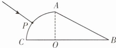 1. 首先,光线从$P$点射向$O$点,在$AC$面发生折射,根据折射定律,光从空气斜射入玻璃中时,折射角小于入射角,画出折射光线。