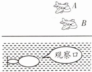 观察图中A、B两架飞机的位置,B飞机的位置相对较低,所以B是实际飞机,A是观察到的像。