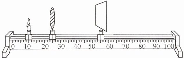 解:由图可知,蜡烛在20cm刻度线处,凸透镜在50cm刻度线处,光屏在65cm刻度线处。
