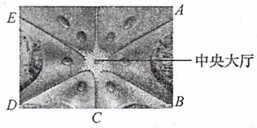 8. 如图所示,北京大兴国际机场航站楼设计精巧,拥有“五指廊”结构,寓意“凤凰展翅”。普通成年人以正常步行速度从中央大厅走到$A$登机口,需要的时间大约为$8min$。根据图片信息,估测$A$、$B$两登机口之间的距离最接近(