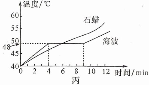 (4) 结合实验中观察到的现象和记录的数据作出如图丙所示的熔化图像,由图丙可知:海波在第