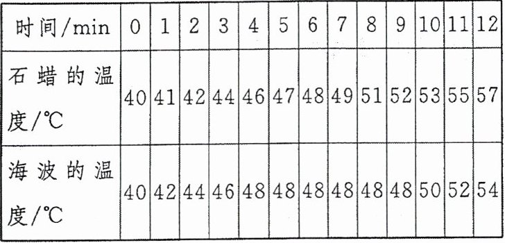 ;石蜡在熔化时逐渐变软变稀,不断吸热,温度持续升高