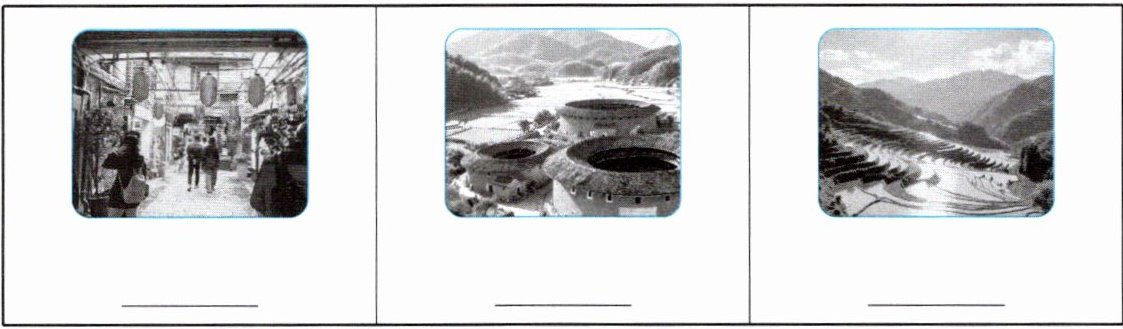 Hello,everyone! We are students from Happy Primary School. Our first stop(站) is a village in Yunnan. Look at the fields. They are colourful. People there live a happy and quiet life. Then we go to a small village in Fujian. People there live in round buildings. Some buildings are big enough(足够地) to have 400 rooms. At festivals,there is a big dinner party. Our last stop is Tianzifang. It's a small and quiet place in Shanghai. There are many shops. You can see a lot of old houses. People there enjoy doing the art(从事艺术创作) like painting and pottery(制陶).