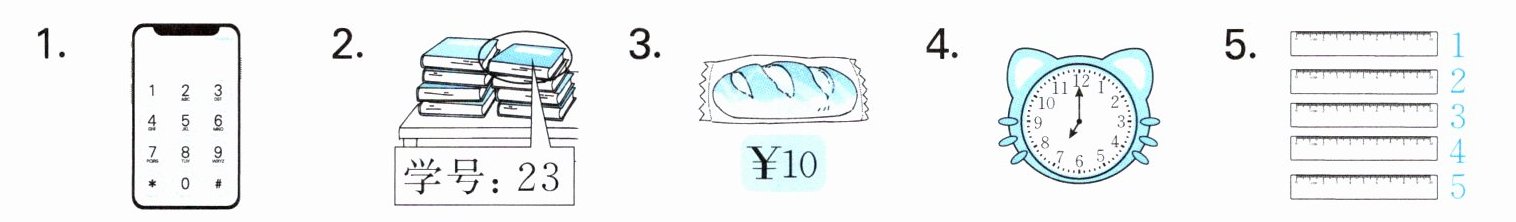三、下列图片体现了数字的什么作用呢?将序号写在对应的括号内。