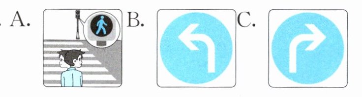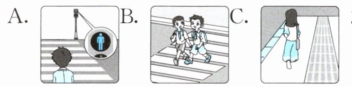 A. Don't run. B. Don't ride bikes here. C. Please wait for the green light.