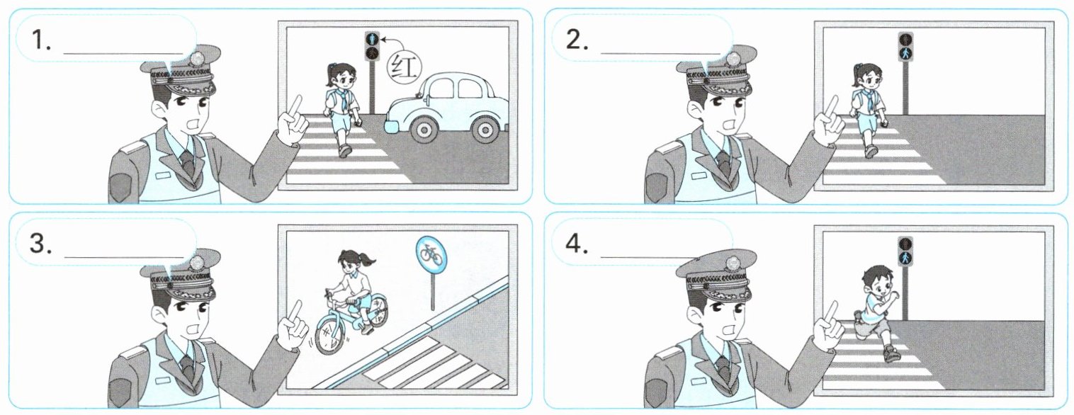 三、判断图片中小孩的行为是否文明。若文明,在横线上画“√”,否则在横线上填写对应劝诫语的序号。