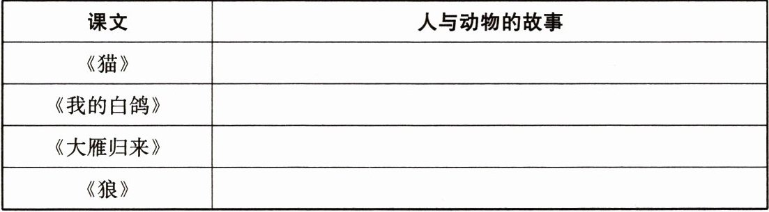 1. 拍摄微电影前,需要熟悉剧本原型。请简述课文中人类与动物间的故事。