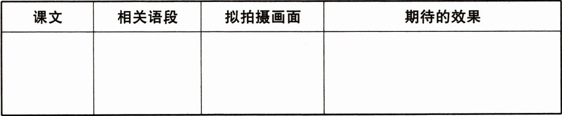 |课文|相关语段|拟拍摄画面|期待的效果|