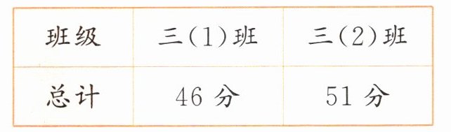 3 中国历史知识竞赛分两轮进行,三年级两个班的总分如下表。第一轮两个班的得分相同,第二轮三(1)班得了 22 分,第二轮三(2)班得了多少分?