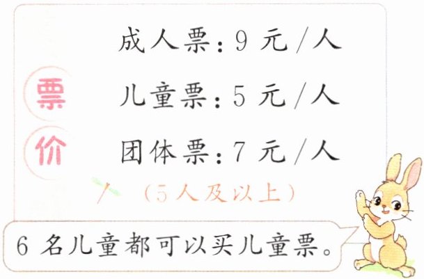 5. 3 位家长带 6 名儿童去公园游玩,怎样买票最划算?