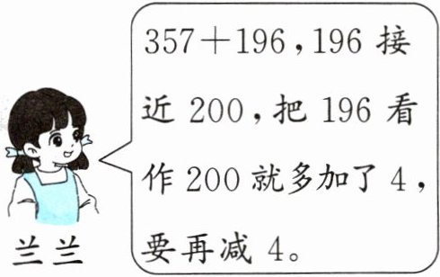 4. 你能看懂兰兰的想法吗?这样的方法叫“凑整法”。学一学,算一算。